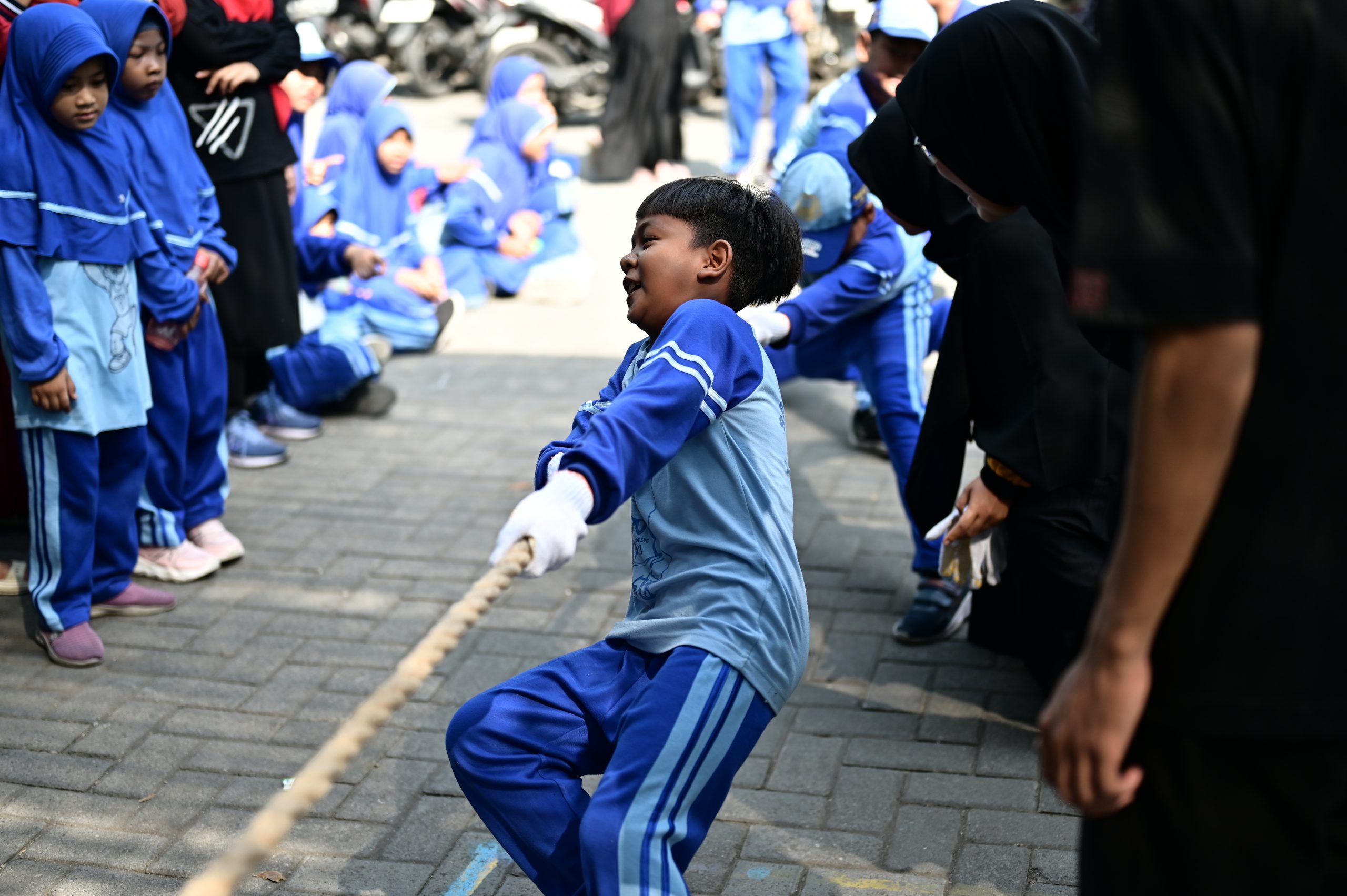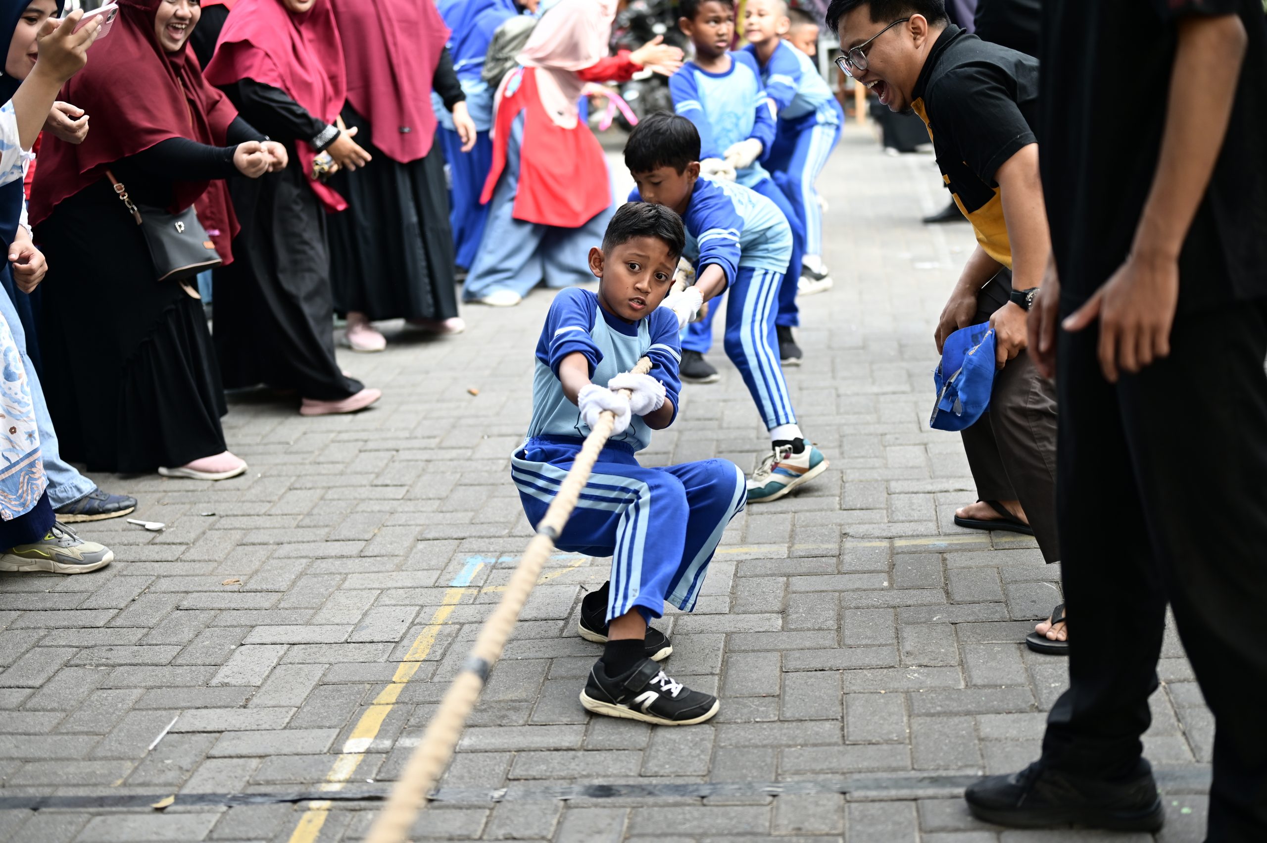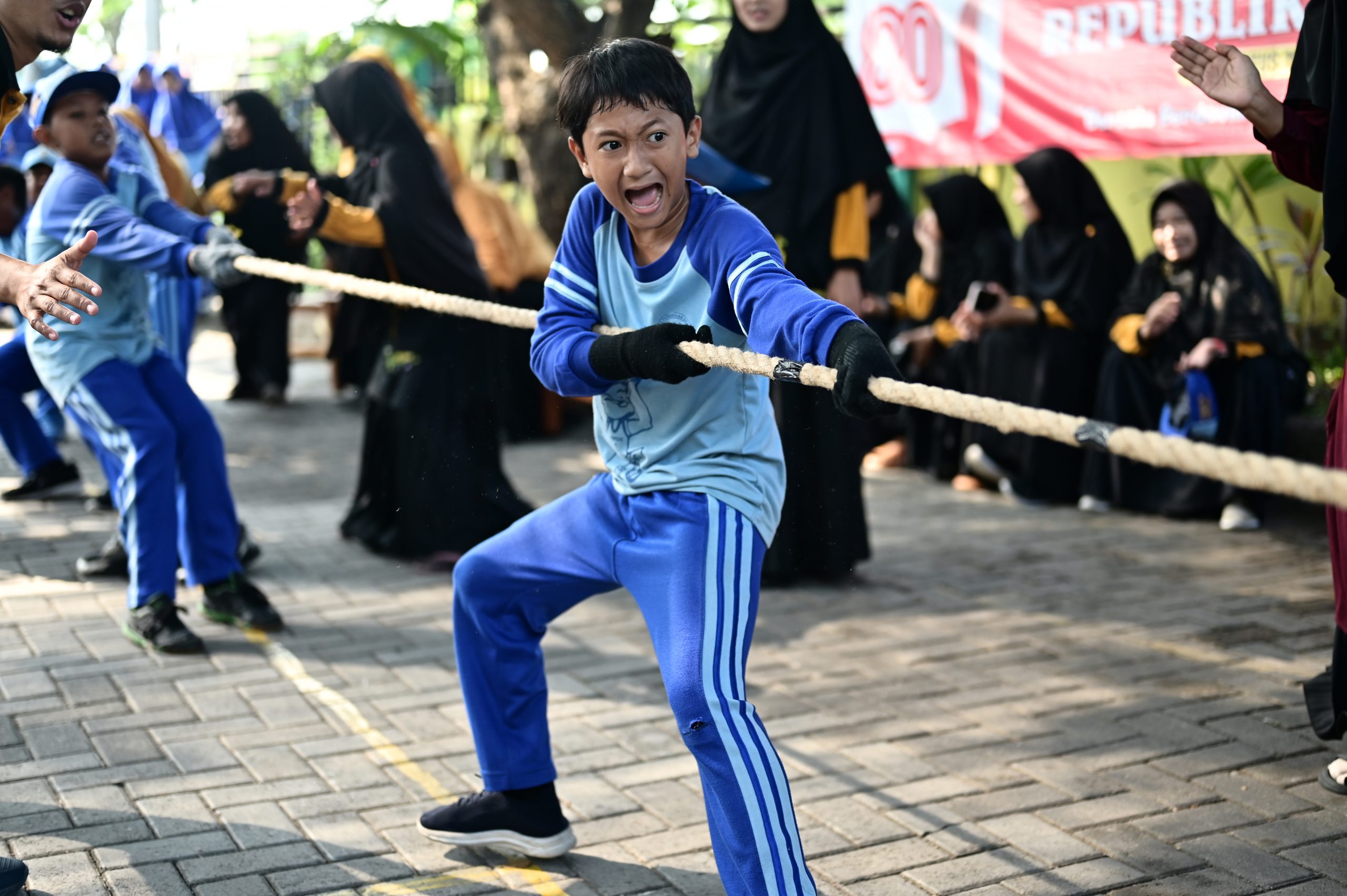 Acara pertama, lomba tarik tambang, berlangsung pada Sabtu, 23 Agustus 2025 di halaman sekolah. Seluruh siswa kelas 1 hingga kelas 6 berpartisipasi dengan penuh semangat, masing-masing kelas mengirimkan lima perwakilan terbaik mereka untuk bertanding. Sorak sorai para siswa dan dukungan hangat wali kelas membuat suasana semakin membara. Meski tangan terasa perih dan tubuh kelelahan, para peserta tak sedikit pun mengendurkan semangat. Wajah-wajah tegang, penuh harap, sekaligus bertekad kuat menunjukkan betapa mereka ingin memberikan yang terbaik demi nama baik kelas masing-masing.